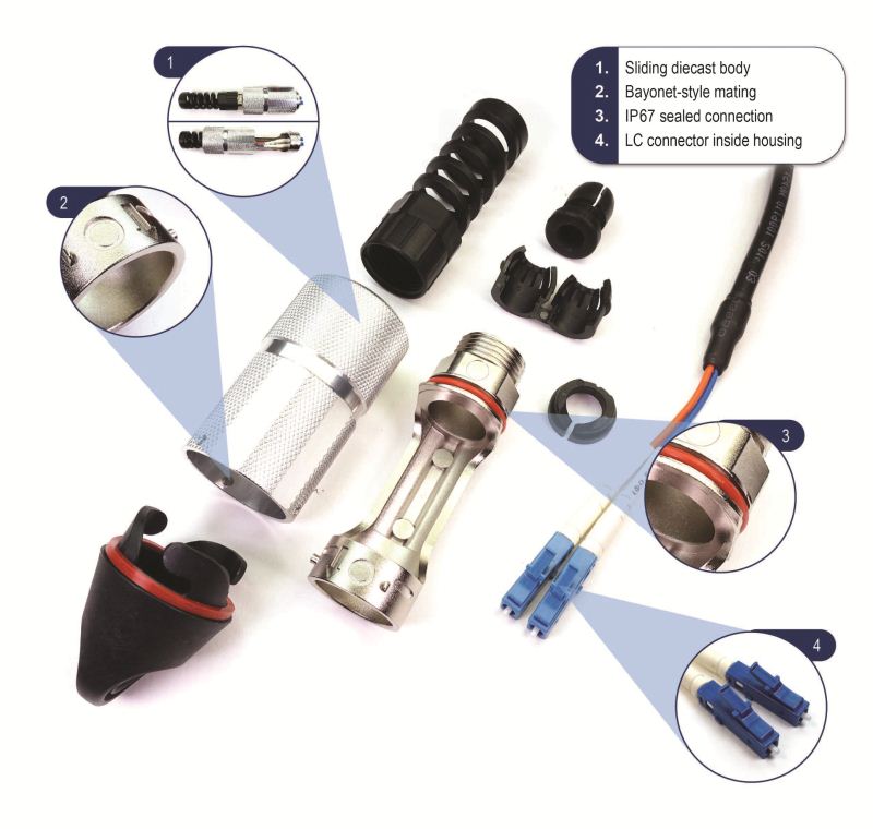 • 允許靈活使用工廠終止的裝配或現場安裝的裝配。